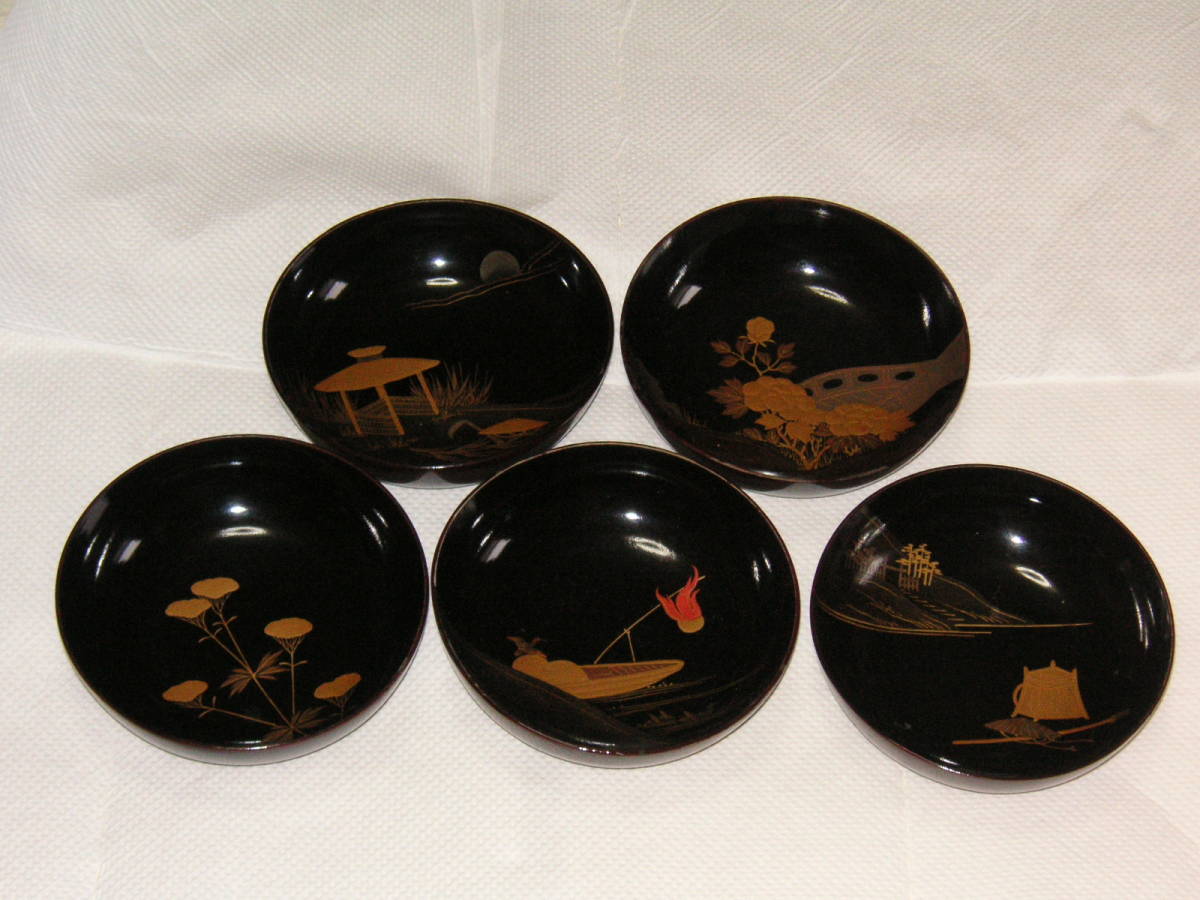 - 漆器 輪島 本金 木皿 絵替り 5客 ②(20181114)
