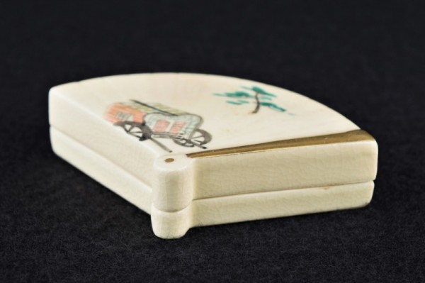 - I74 銘:青嵐 香合 開扇 御所車 松 金彩 /茶道具 (kngs)