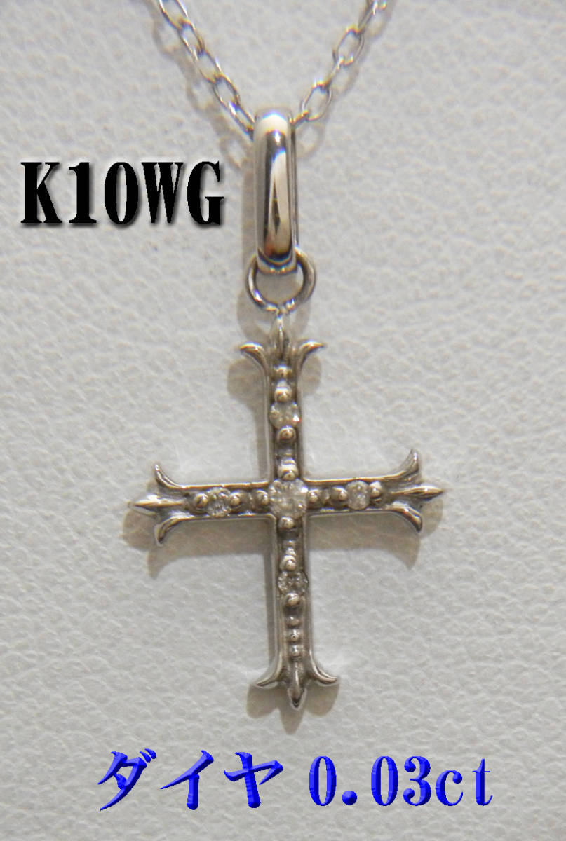 - 限定特価!新品 K10WG 10金 ゴシッククロス(十字架)ダイヤモンド ネックレス