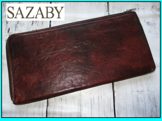 - 日本製☆SAZABYサザビー 柔らかレザー長財布 定期入れ チョコチャ ダークブラウン 未使用 展示品14700円 バレンタインデー