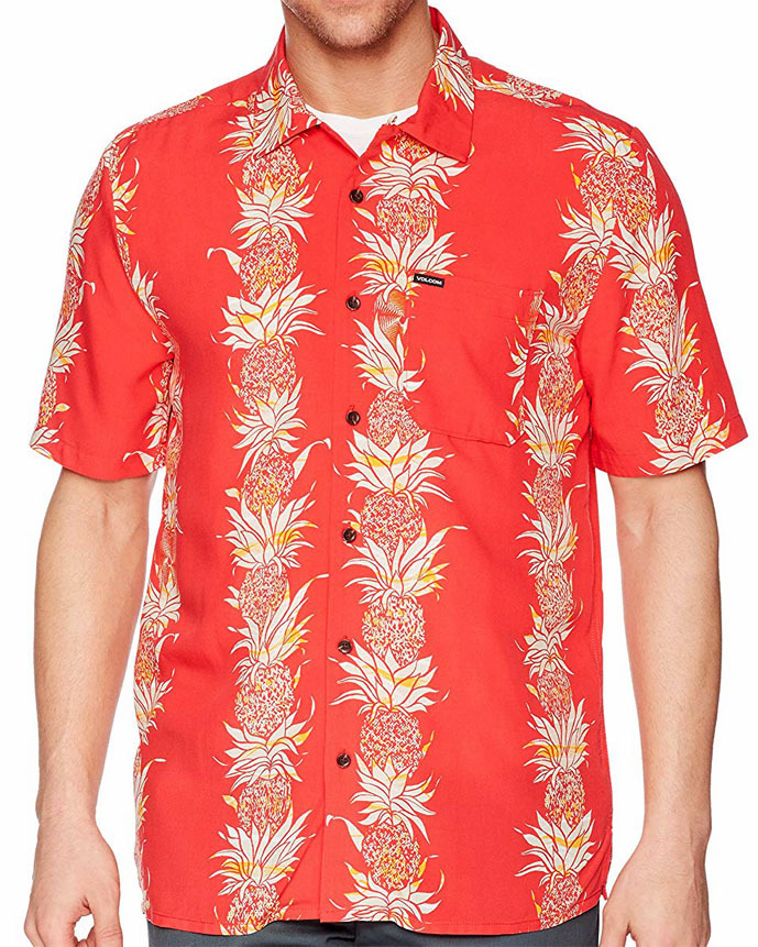 > Volcom Palm Glitch 半袖 シャツ ボルコム レーヨン Mサイズ 赤 レッド アロハ