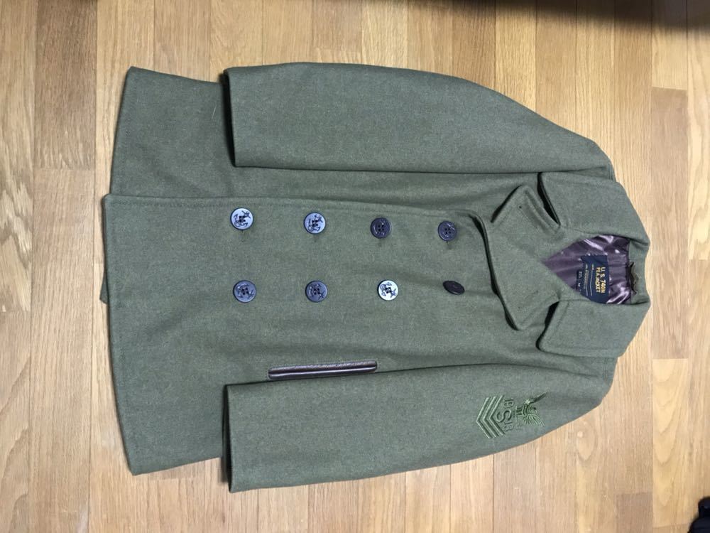 > ショットSCHOTT Pコート カーキ色 Mサイズ ポケット入口本革使用 未使用の新品です。とてもカッコ良いです