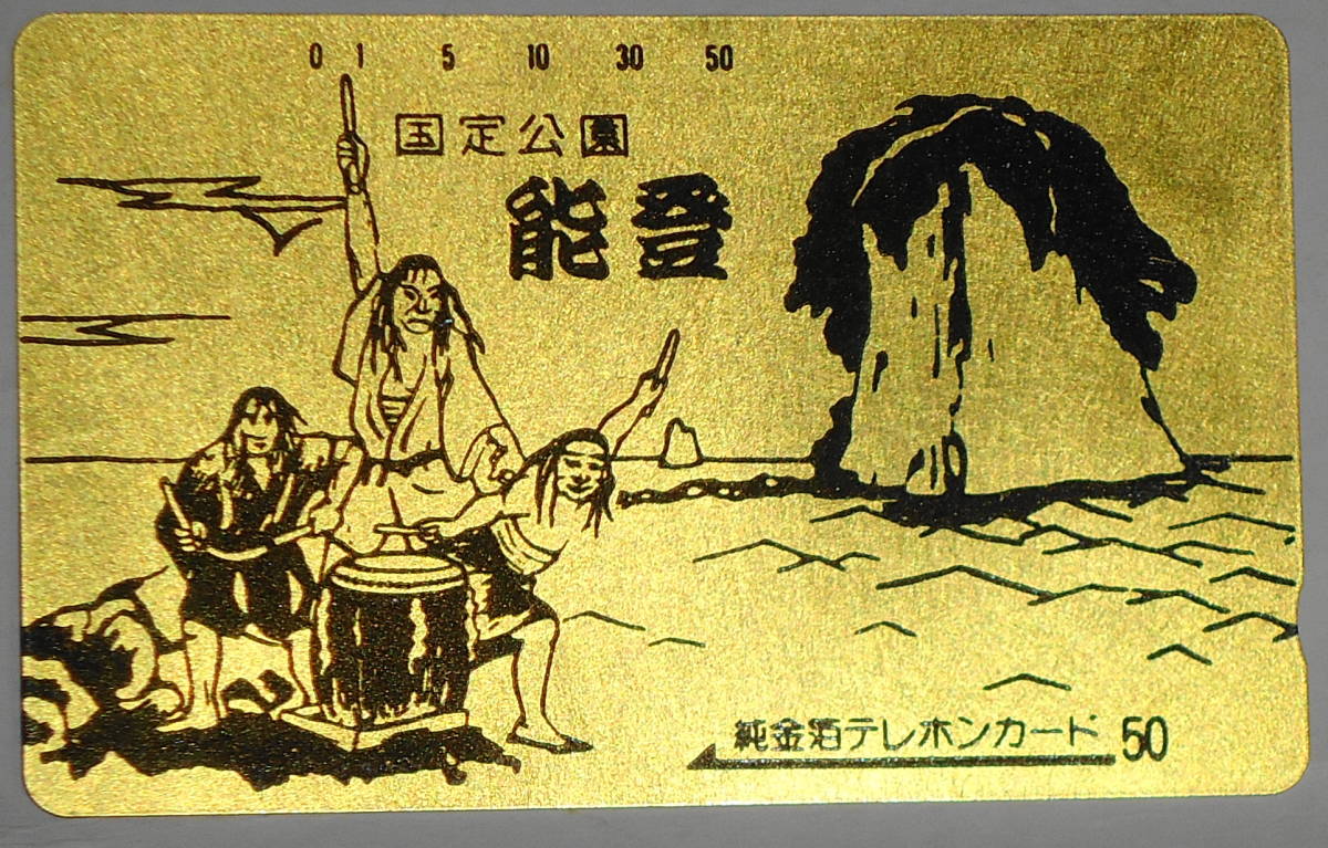 - 新品 純金箔 テレカ 能登 国定公園 御陣乗太鼓 伝統芸能 ★条件付未使用NTTベイブリッジテレホンカードあり