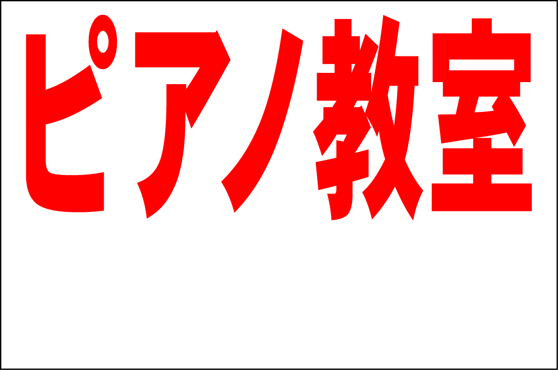 - シンプル看板 「ピアノ教室 余白付(赤)」Lサイズ <スクール・塾・教室> 屋外可(約H60cmxW91cm)