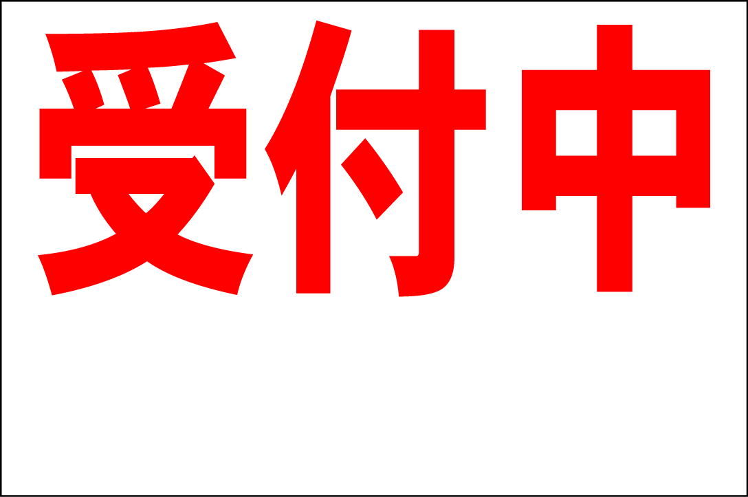 - シンプル看板 「受付中 余白付(赤)」Lサイズ <スクール・塾・教室> 屋外可(約H60cmxW91cm)