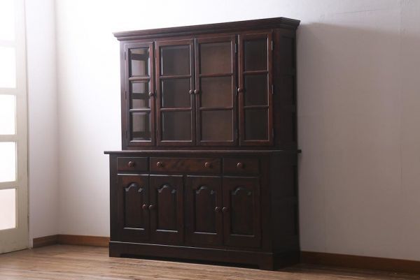 > R-039957 ヴィンテージ家具 松本民芸家具 F型 シックなデザインの高級感漂う食器棚(カップボード、飾り棚、収納棚、本箱)(R-039957)