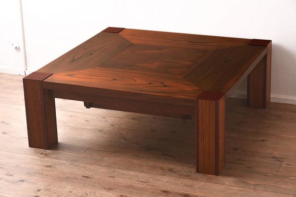- R-041752 在庫未使用品 IDC大塚家具 藤沢木工 脚乾漆 ケヤキ無垢材 いろり(座卓、火鉢)(定価約32万円)(R-041752)