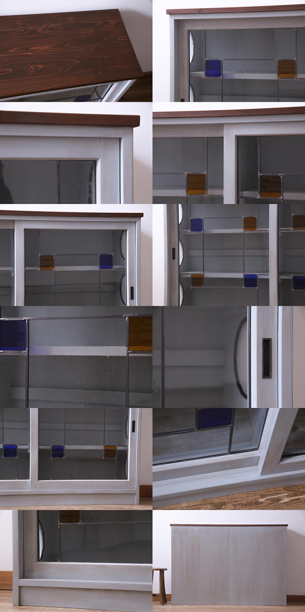 - R-033748 当店オリジナル 古建具リメイク おしゃれな当店製作のステンドグラス入り戸棚(収納棚、サイドボード)
