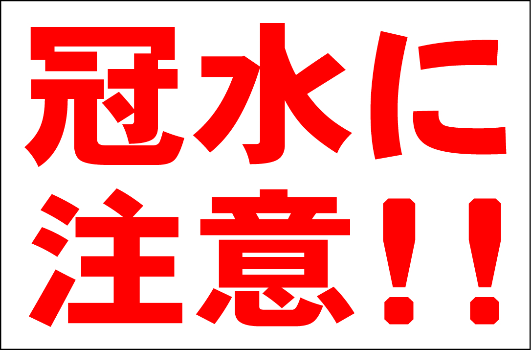 - シンプル看板 「冠水に注意!!」Lサイズ <マーク・英語表記・その他> 屋外可(約H60cmxW91cm)