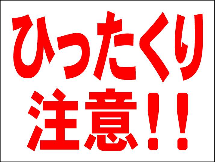 - シンプル看板 「ひったくり注意!!」Mサイズ <マーク・英語表記・その他> 屋外可(約H45cmxW60cm)