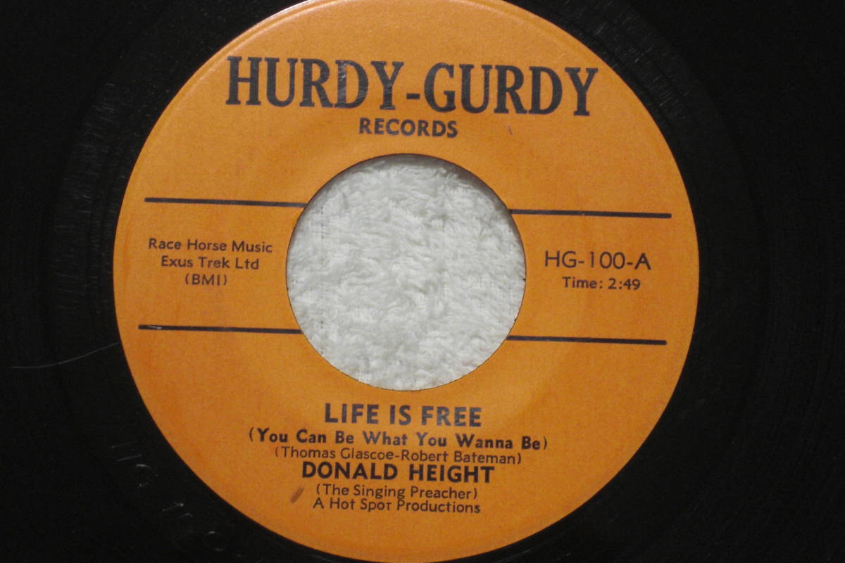> USシングル盤45’ Donald Height : Life Is Free (You Can Be What You Wanna Be) / De Da Da (Hurdy-Gurdy HG-100) A