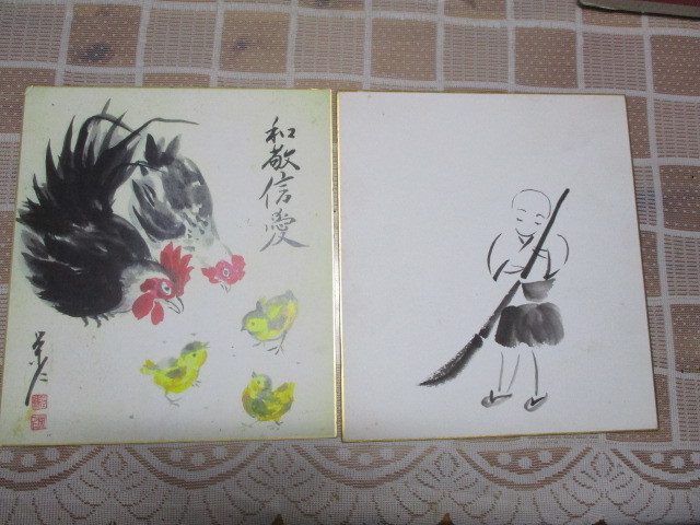 ★色紙★書★『鶏図』他★2枚セット★肉筆★サイン・落款あり★アンティーク★6