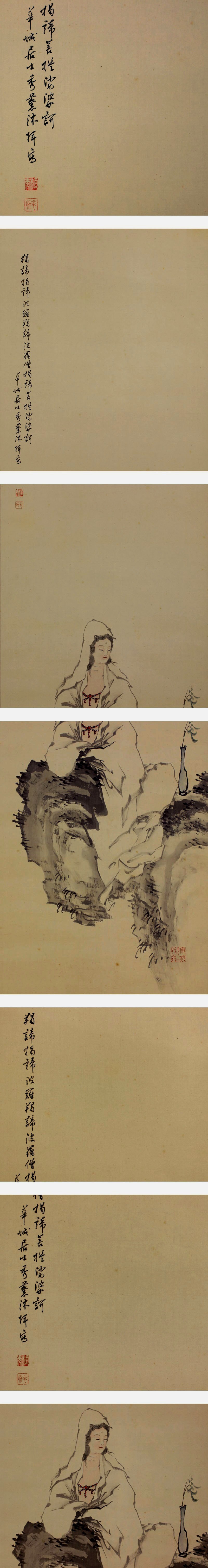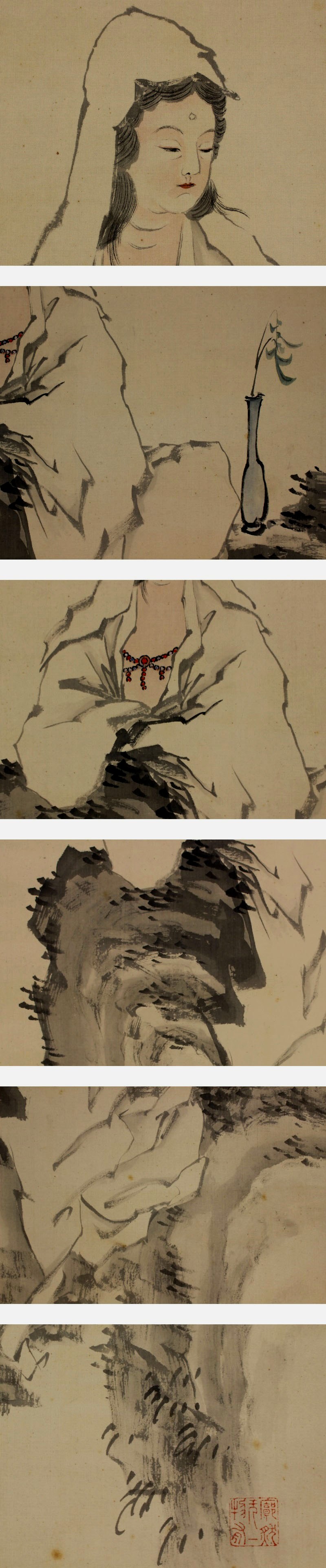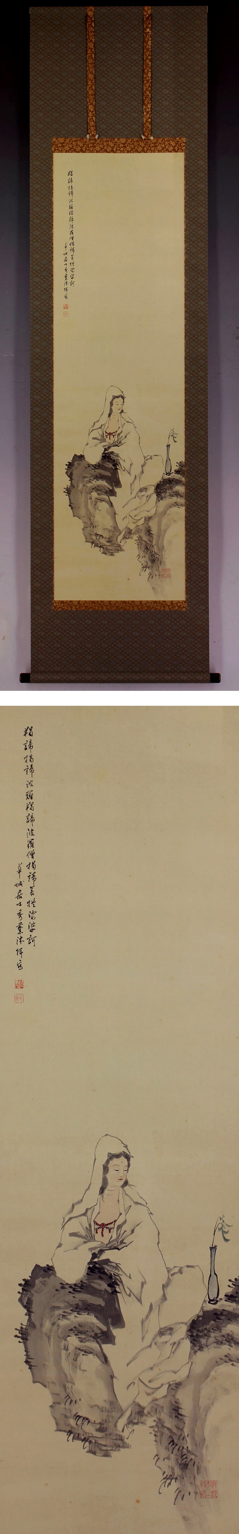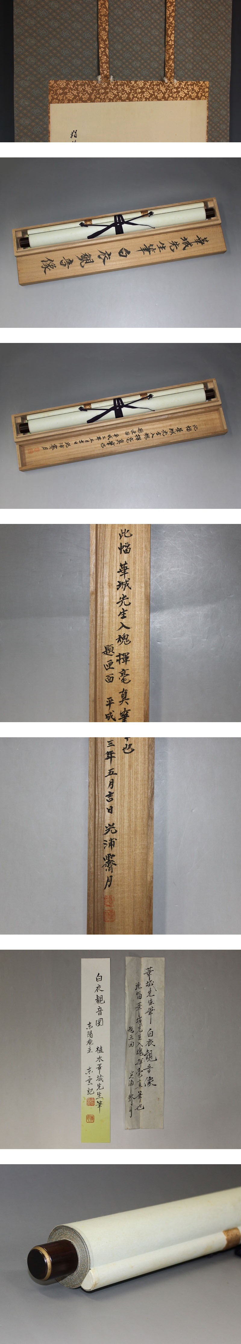 - 【真作】植木華城【白衣観音】◆絹本◆識箱◆掛軸 x02085