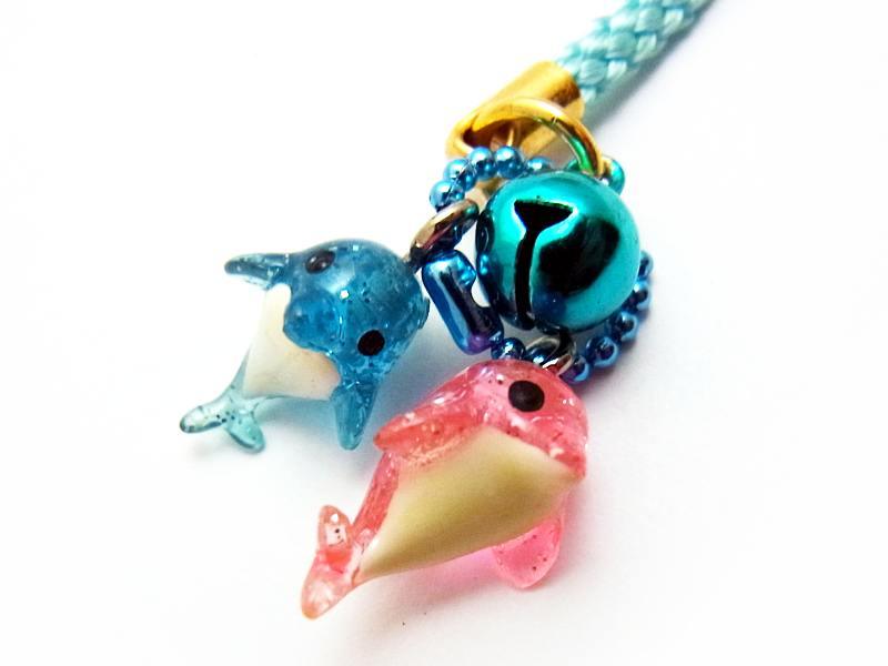 - 【かわいい♪】ラメがキラキラ ブルーとピンクのイルカのペアマスコット 根付ストラップ マリンモチーフ キーホルダー 水族館 お土産