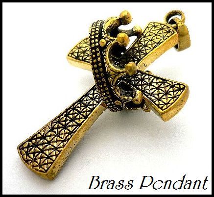 - 真鍮製Brassハンギング王冠クラウン十字架クロス ブラス ペンダント