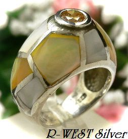 - シルバー925銀のシェル貝殻入り リングtypeA[イエロージルコニア]12号ラスト1個/シルバージュエリーALL50%OFF