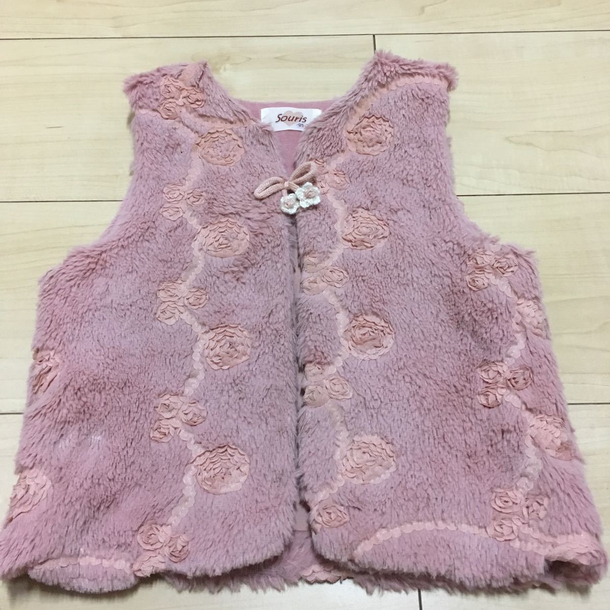 > 新品 スーリー ファーベスト 防寒着 アウター チョッキ フラワーモチーフ 95cm 5,390円のお品