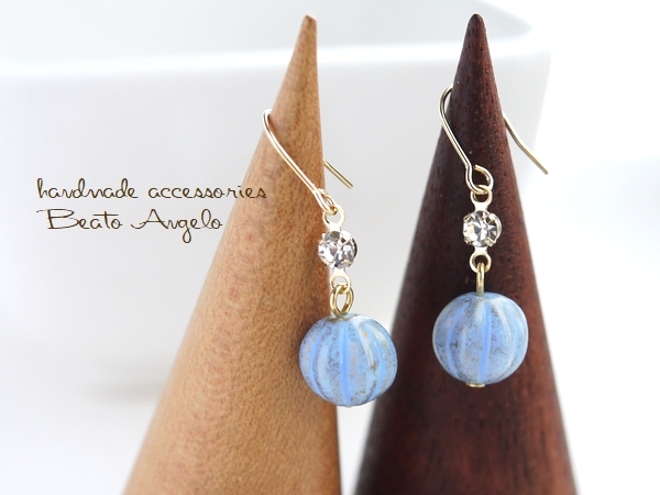 - ◆◆+angelo+チェコメロンとラインストーンのピアス(p-286)エンジェルブルー G チタン 樹脂 イヤリング