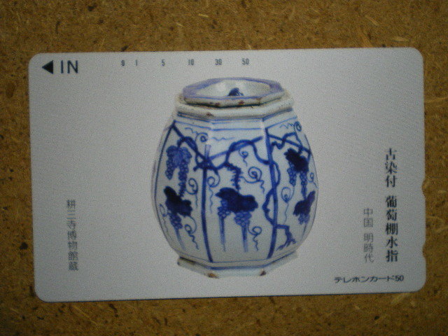 - gaik・330-47333 中国 明時代 古染付 葡萄棚水指 未使用 50度数 テレカ