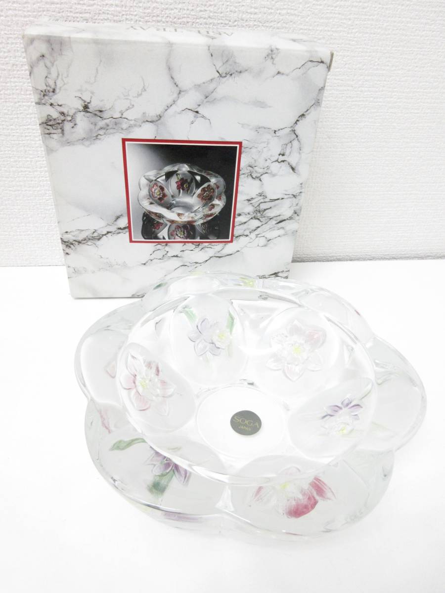 > 未使用品■SOGA GLASS アッシュトレイ 灰皿 SUNNY ASH TRAY7 M82S HAND PAINTED 花 日本製 管理1905 R-13
