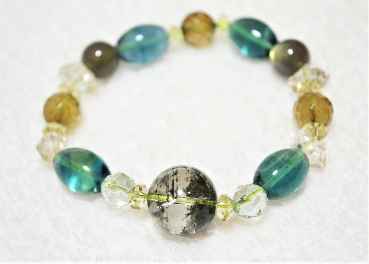 > 期間限定特別価格ガーデンクォーツ ラブラドライト ブルーフローライト プラジオライト 琥珀 こはく オリジナルブレスレット15.5