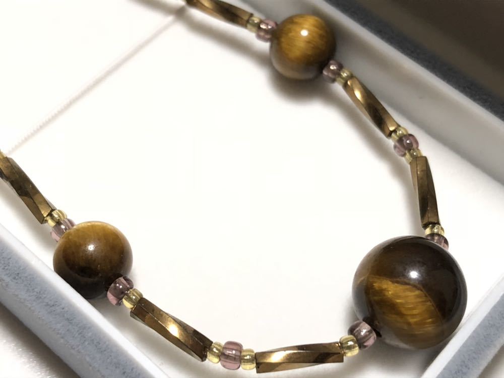 - タイガーアイ ビーズ 12.0g デザイン ペンダントネックレス【検/虎目石】