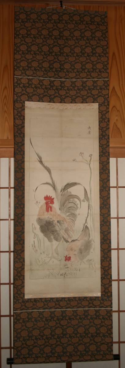 - 【模写】掛軸 林十江 鵯之図 (画稿、下図)紙本 彩色 軸装 (新装)