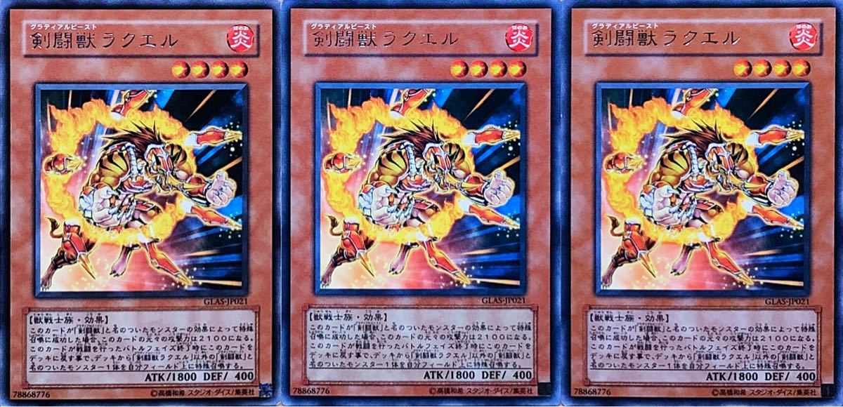 - ☆遊戯王 剣闘獣ラクエル(レア) 3枚セット GLAS-JP021 GLADIATOR'S ASSAULT グラディエイターズ・アサルト 即決☆