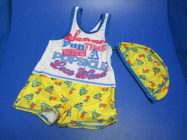 - 送料無料・新品・即決★ベビー用 水着 スイムキャップ付き 95サイズ 14kg★イエローとホワイトベース★b