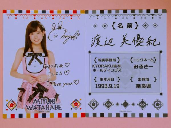 - AKB48 福袋2016 プロフィールカード 渡辺美優紀 2枚セット