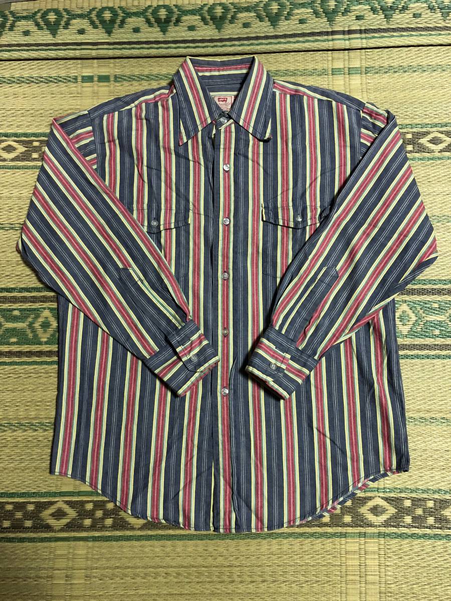 > リーバイス 長袖 ストライプシャツ M 95年製 廃盤 希少 レア 人気 デザイン 定番 メンズ アメカジ カジュアル ファッション 古着