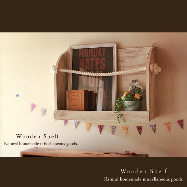 - [送料無料]ハンドメイド アンティーク風 紐付き ウォールシェルフ ホワイト