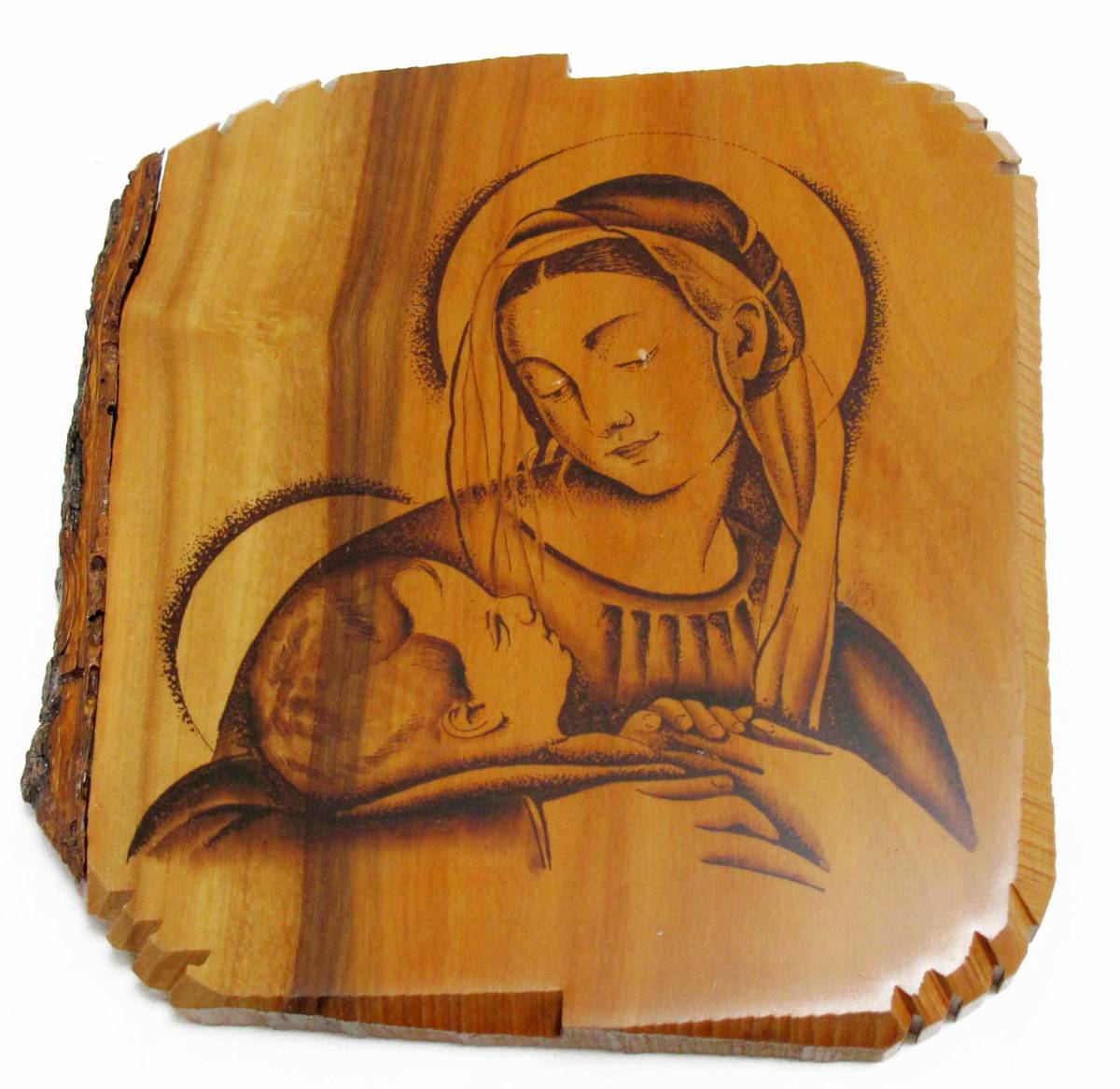 - イタリア製/一枚木板製マリア様と幼子イエス/壁かけ式/ヴィンテージ