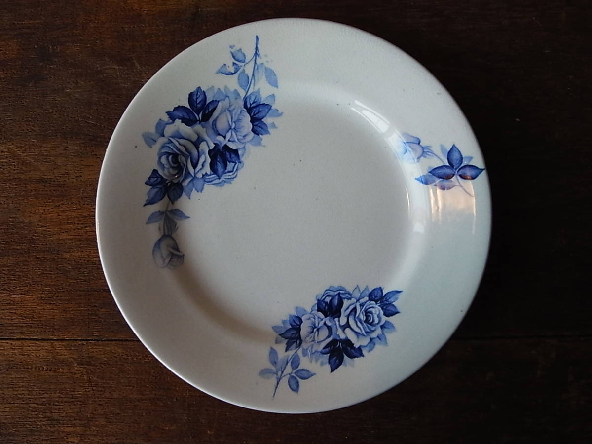 - IDEAL IRON STONE CHINA 青いバラの平皿中④/IDE BROS POTTERY 井出製陶 レトロ プレート ばら 薔薇 花
