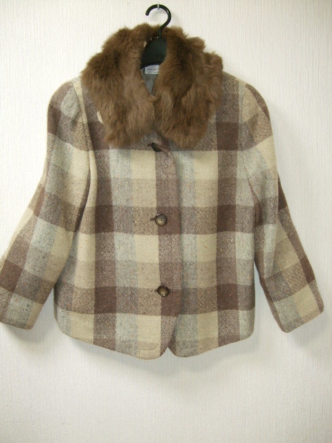 - 美品レトロ 千趣会【チエック柄 ジャケット】 余裕の7AR 普段着に。クリーニング済。秋冬準備に。