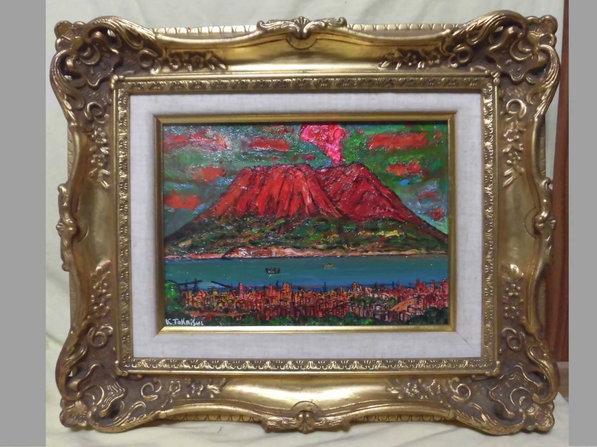 - 72 古いF4号油絵 高石国夫 さくら島(城山より)現代美術家集団 「真作」