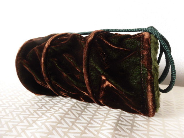 > ●美品ANTEPRIMA/アンテプリマ/伊製/茶緑ベロア/ワイヤー入筒型/ハンドバック/パーティー