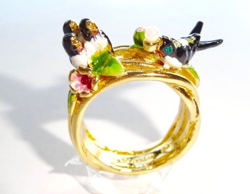 - フランス レネレイド リング 指輪 鳥 ツバメ 花 つぼみ 葉っぱ ゴールド 親子 9~11号 パール ビーズ 新品 N2 エヌドゥ パリ 人気ブランド