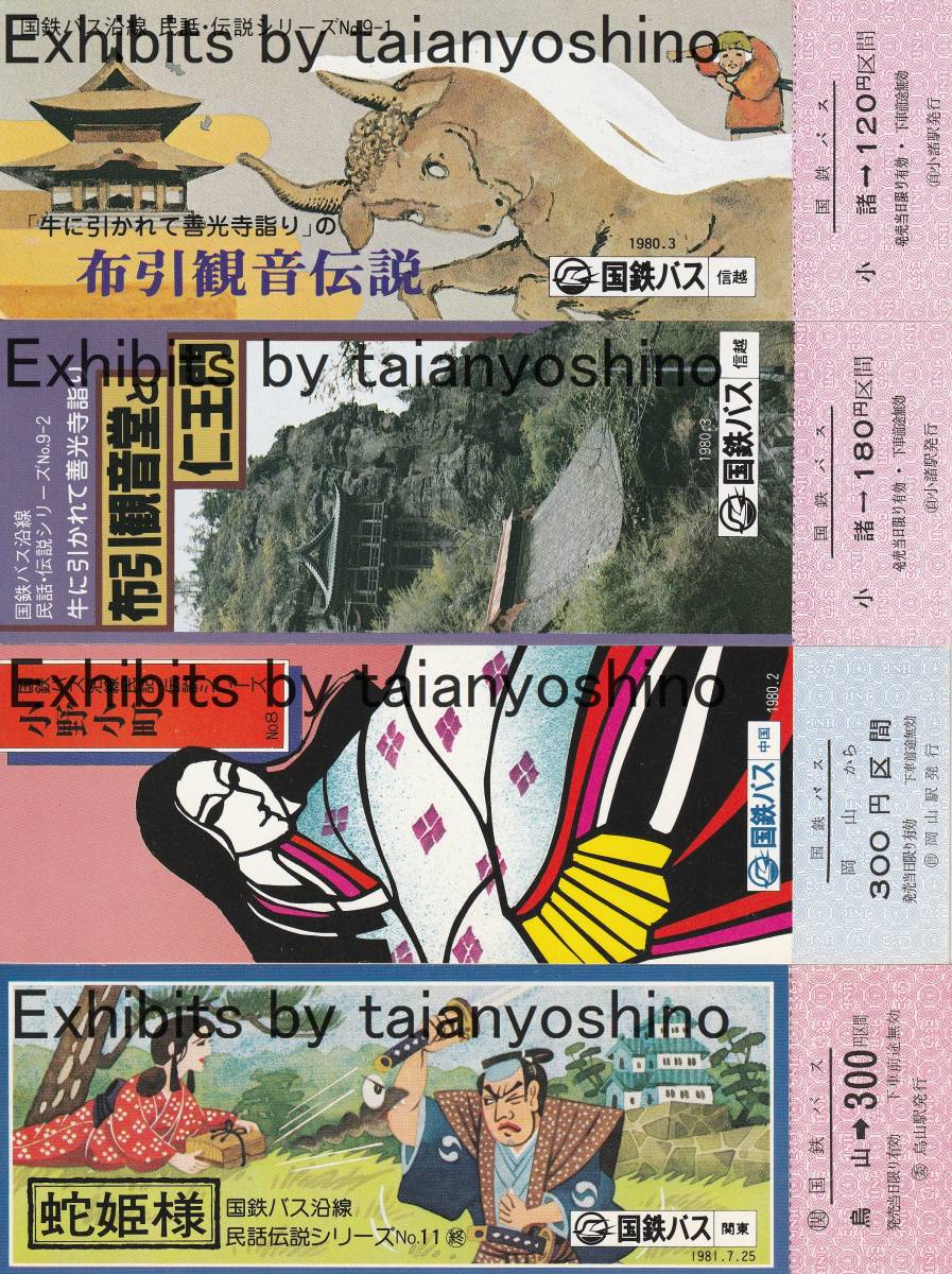 - 国鉄バス 1980,1981年 小諸駅/岡山駅/烏山駅 国鉄バス沿線 民話伝説シリーズ記念乗車券 4枚セット