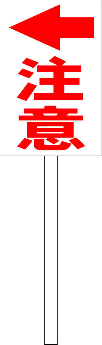 - シンプル立札看板 「注意←(赤)」工場・現場 屋外可(面板 約H45.5cmxW30cm)全長1m