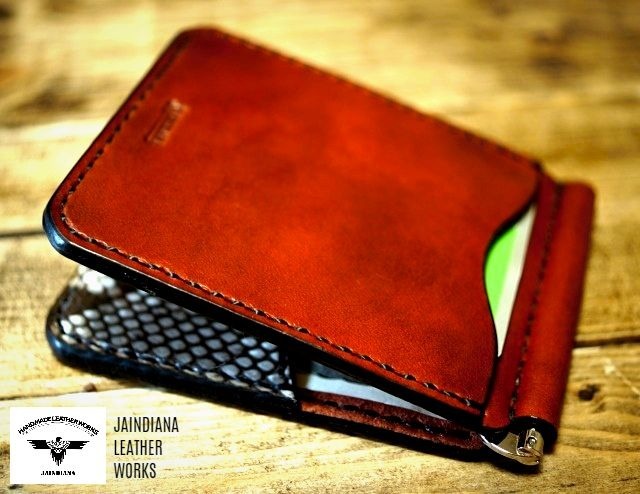 - 手縫い サドルレザー・マネークリップ ビンテージバーガンディー