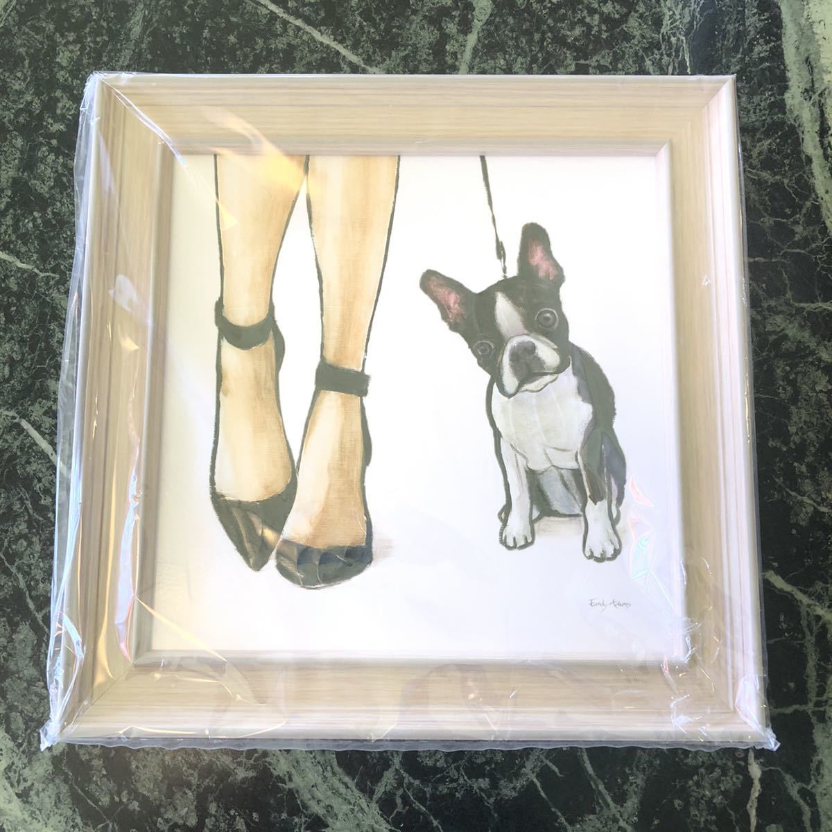 > 【新品】Emily Adams★エミリーアダムズ アートフレーム 絵画 ファーリーファッション2 犬 額縁 ハイヒール 散歩 フレンチブルドッグ