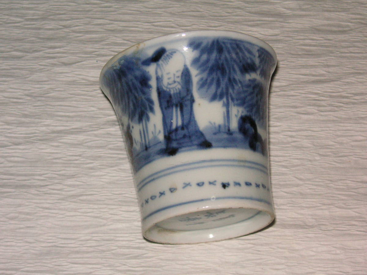 - 猪口 富貴長春 賢人 人物 染付 1客 竹林人物図