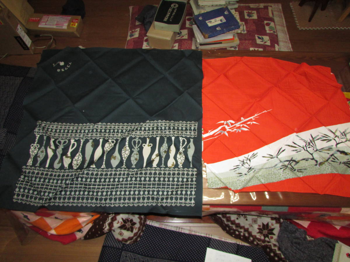 - エコバック・あずま袋材料に(旧家・蔵出し)(レトロな未使用風呂敷・・大と小一組・NO3 )昭和レトロ