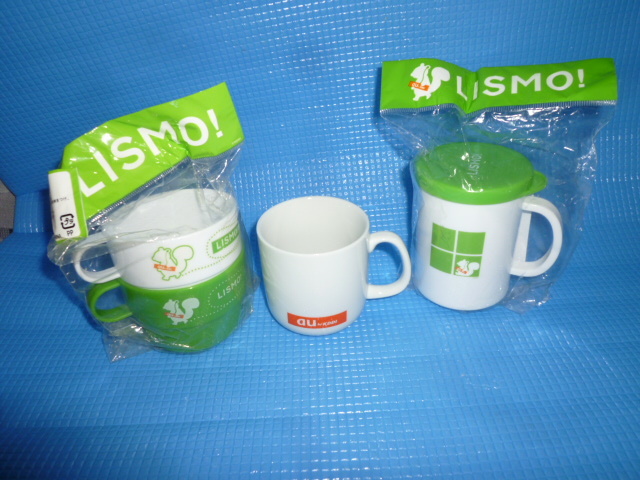 - Cレア品!!★未使用・非売品★レア品!!au by KDDI マグカップとau LISMO リスモ フタ付きカップ他3点