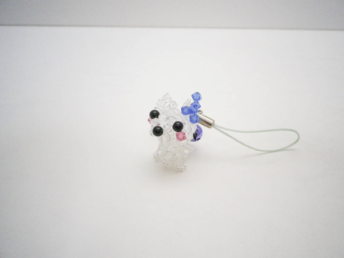 - 「ねこ(猫)ストラップ・スワロフスキービーズ作品」4mm玉・ハンドメイド・未使用品【送料無料】「おかあさんのお針箱」002000160