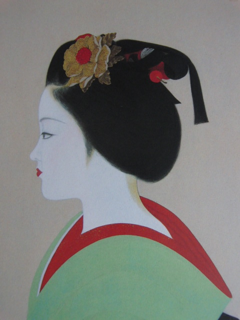- 高木義夫、【先笄髷の舞妓】、希少な額装用画集より、新品額装付、状態良好、送料込み
