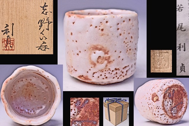 > 若尾利貞 ★ 志野ぐい呑 ★ 共箱共布栞 ★ 美濃のベテラン ★ 使いやすい小振り ★ 上品な作品 ★ 高級な安藤箱 ★ 若尾経 の父