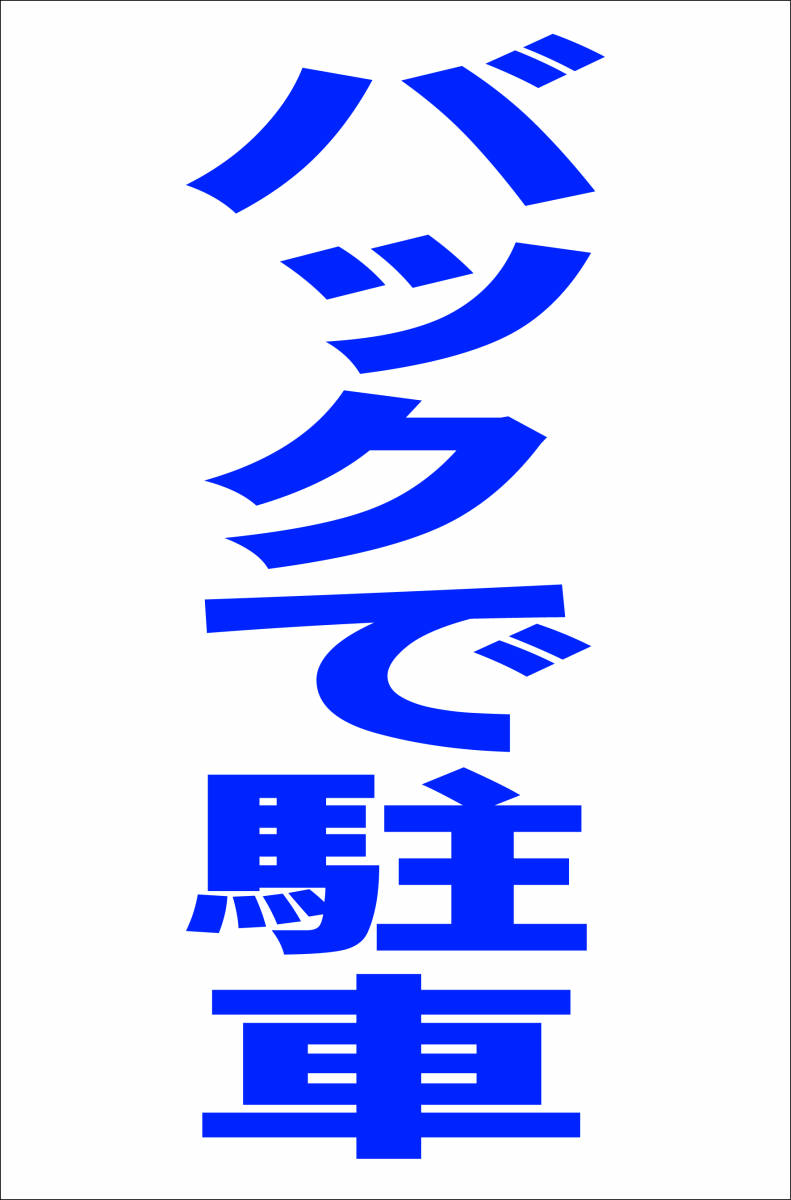 - シンプル縦型看板「バックで駐車(青)」【駐車場】屋外可