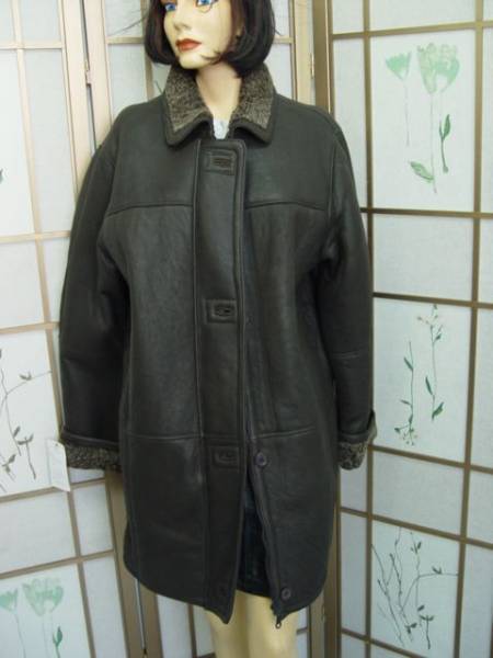 - ブラウン・シェアリング・ラム毛皮コート サイズ6-8